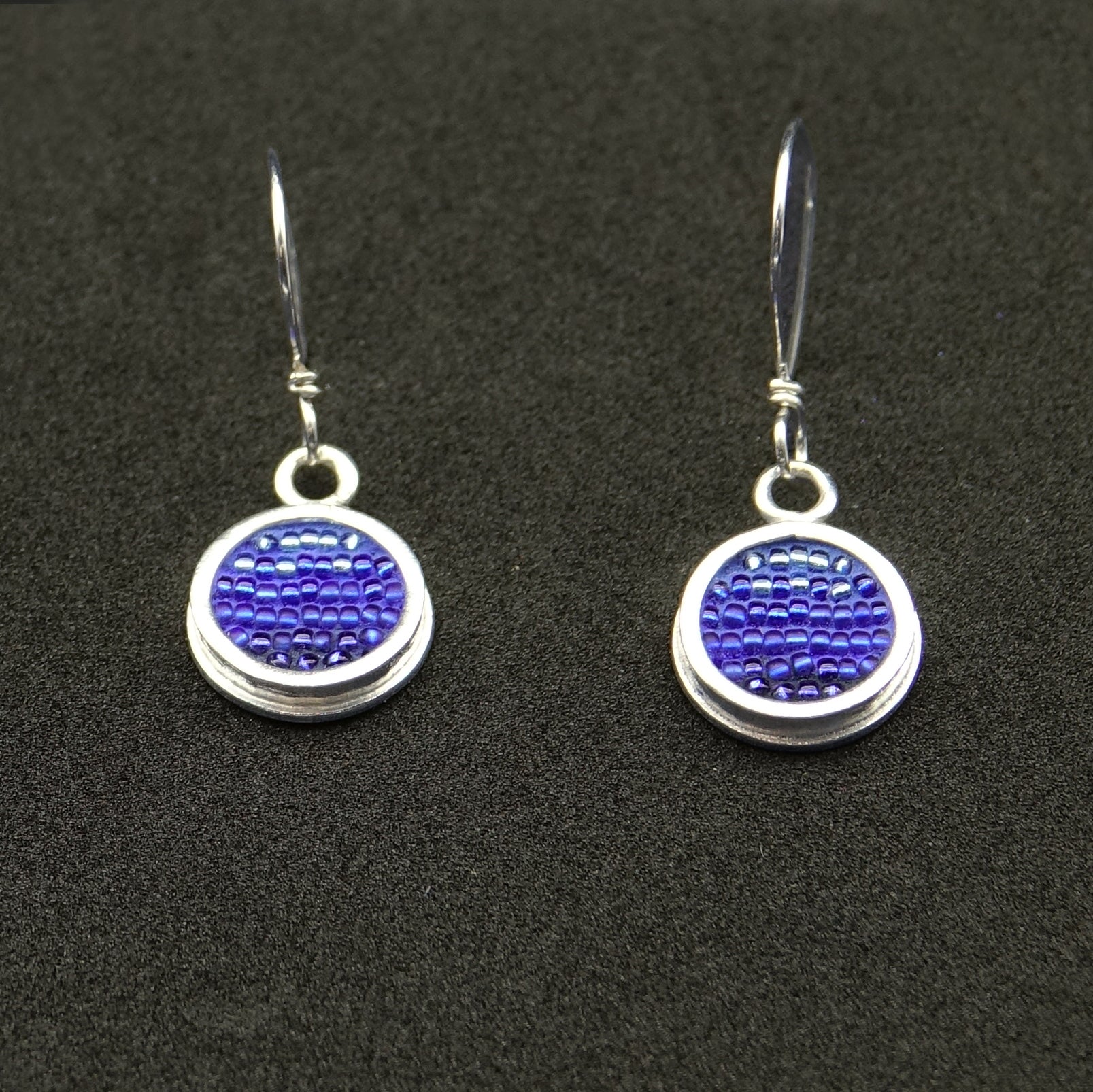 Sterling silver round drop earrings measure 1 1/4" long, the micro-mosaic circle is 1/2" diameter.